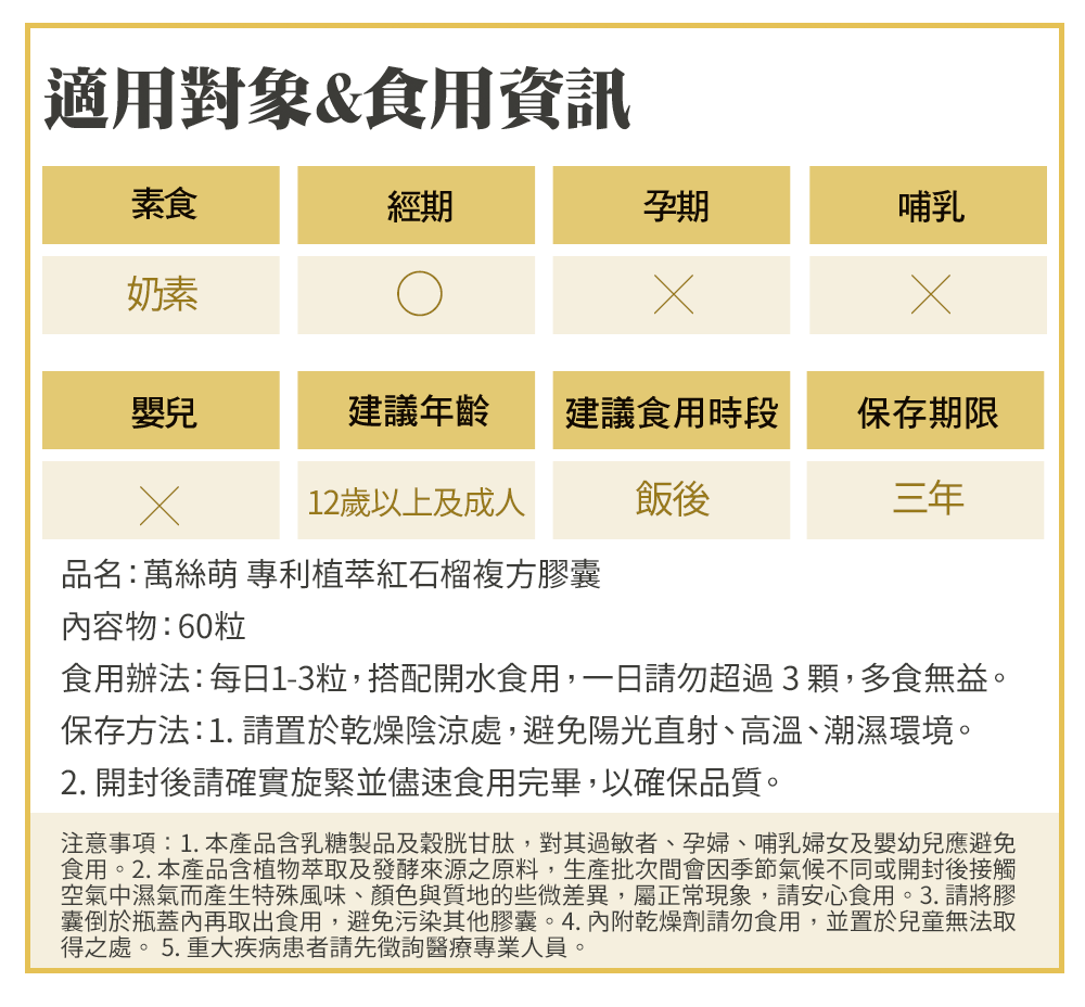 商品名稱:萬絲萌專利植萃紅石榴複方膠囊