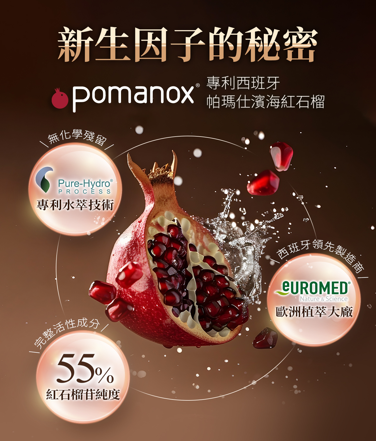✦ 專利Pomanox®西班牙石榴萃取,來自國際權威大廠,萬絲萌生的重要配方
