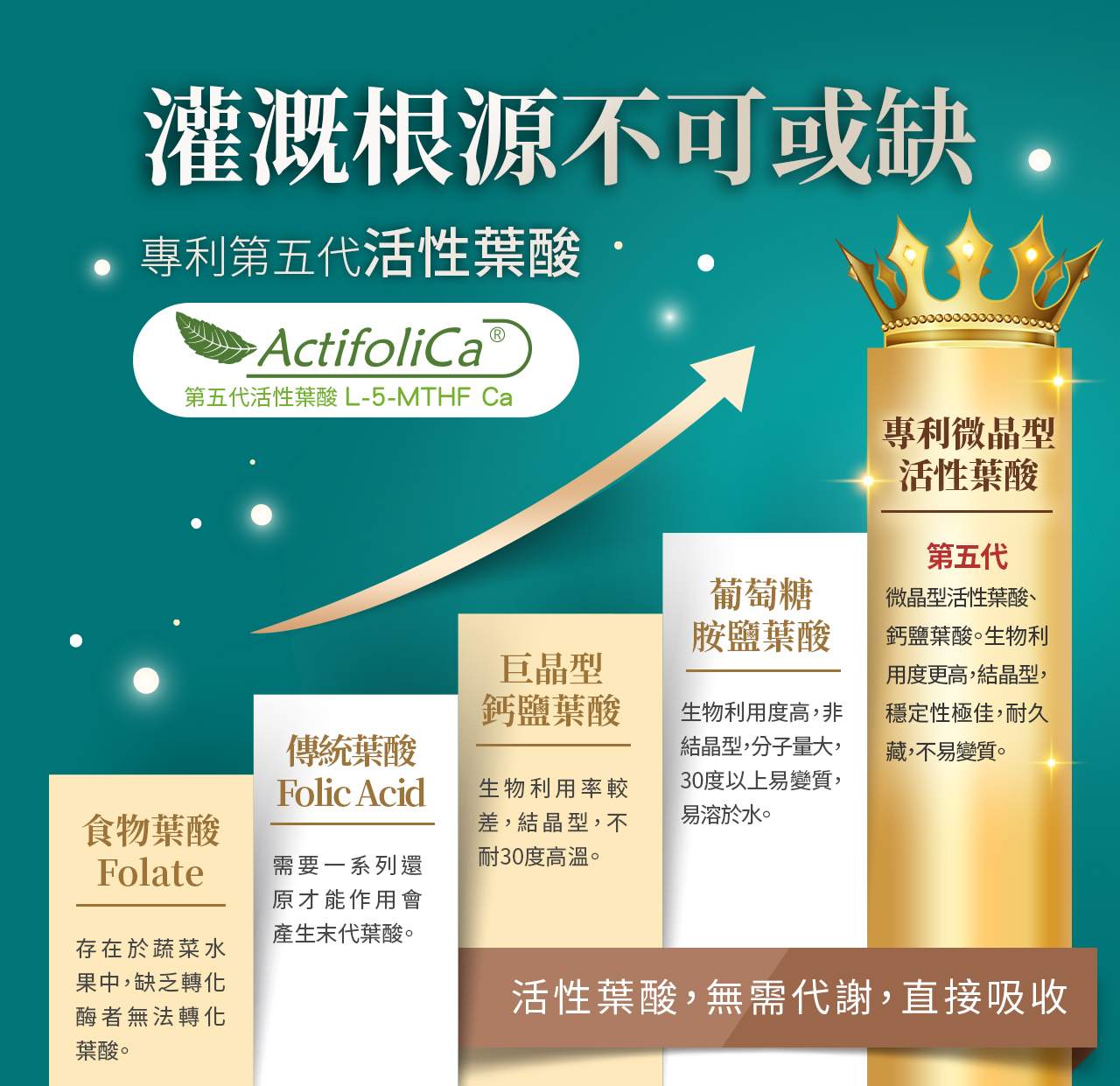 ✦ 專利ActifoliCa®第五代活性葉酸,有助於核蛋白形成