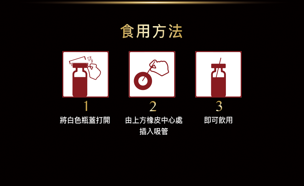 食用方式:一天 1-2 次,每次 1 瓶。使用前請先搖勻,多食無益