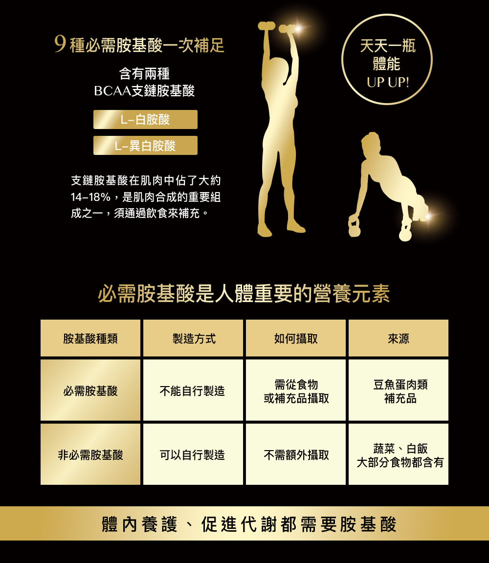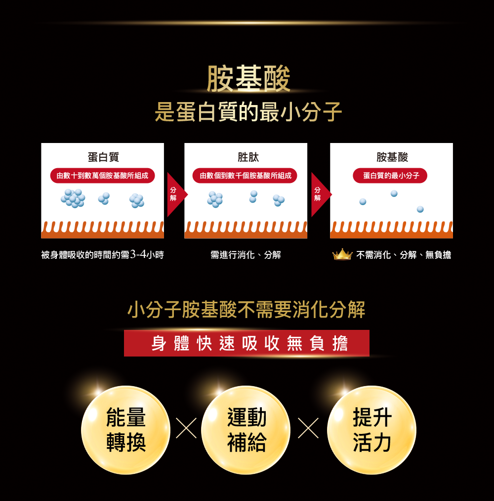 ✦ 小分子胺基酸身體可快速吸收,適合運動前後補充