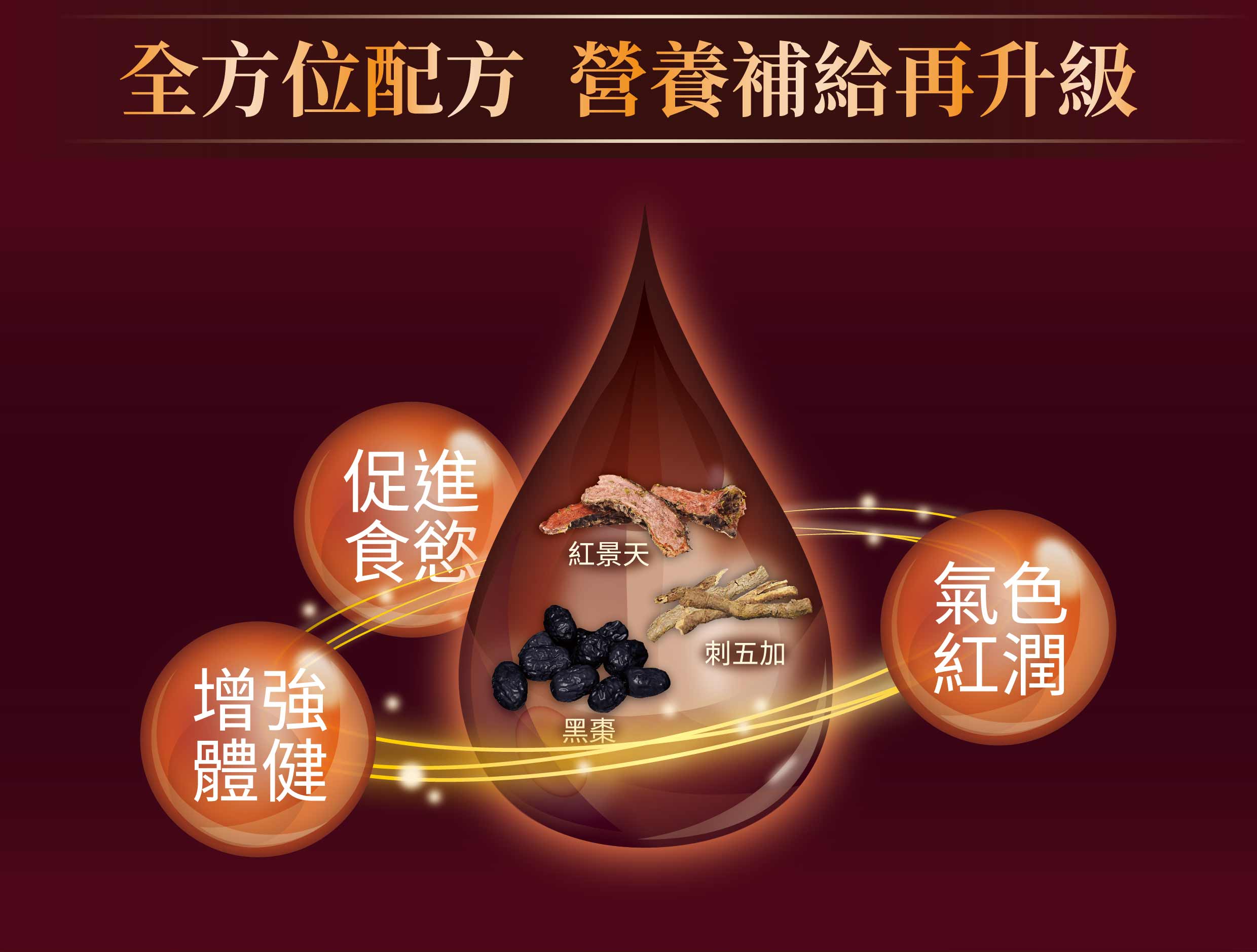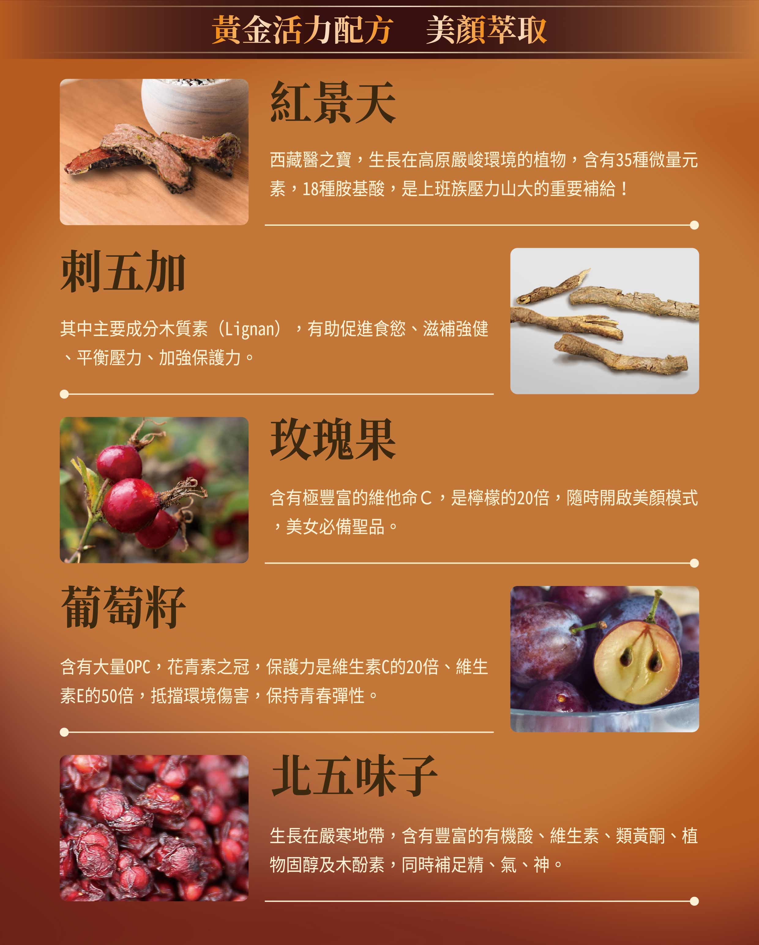 ✦ 18種複合營養原料,黑棗、玫瑰果、紅景天、葡萄籽、蔓越莓、刺五加萃取