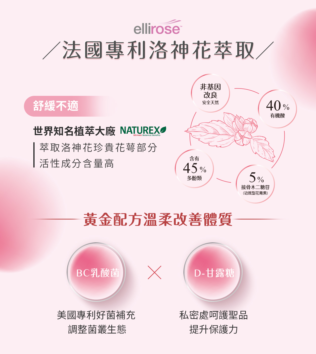 ✦ Ellirose®洛神花花萼萃取,多國專利,抗氧化、緩解經前不適感