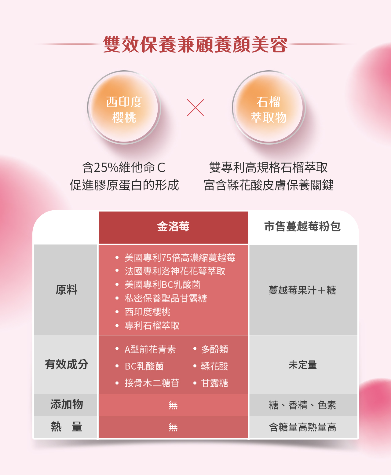 ✦ 西印度櫻桃、石榴萃取,增強抗氧化力,內養外美,養顏美容