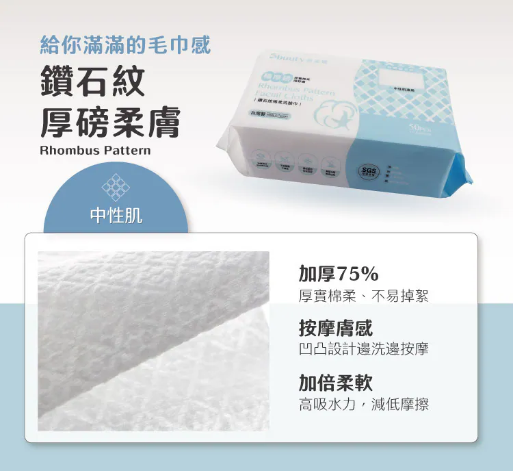 ◆ 最舒適的乾濕兩用洗臉巾,全膚質都適用