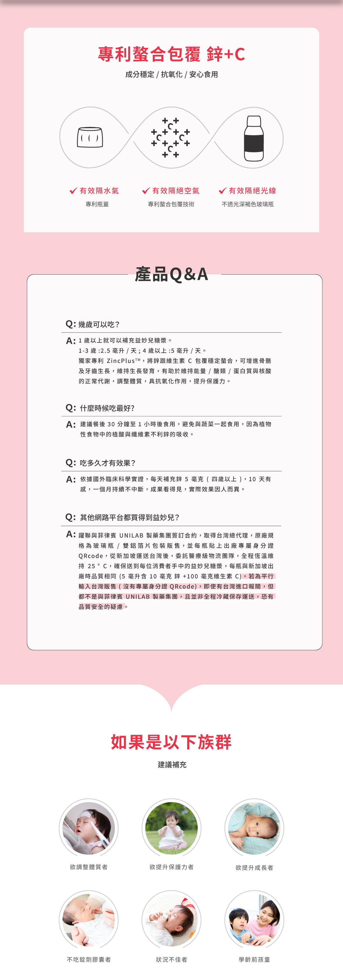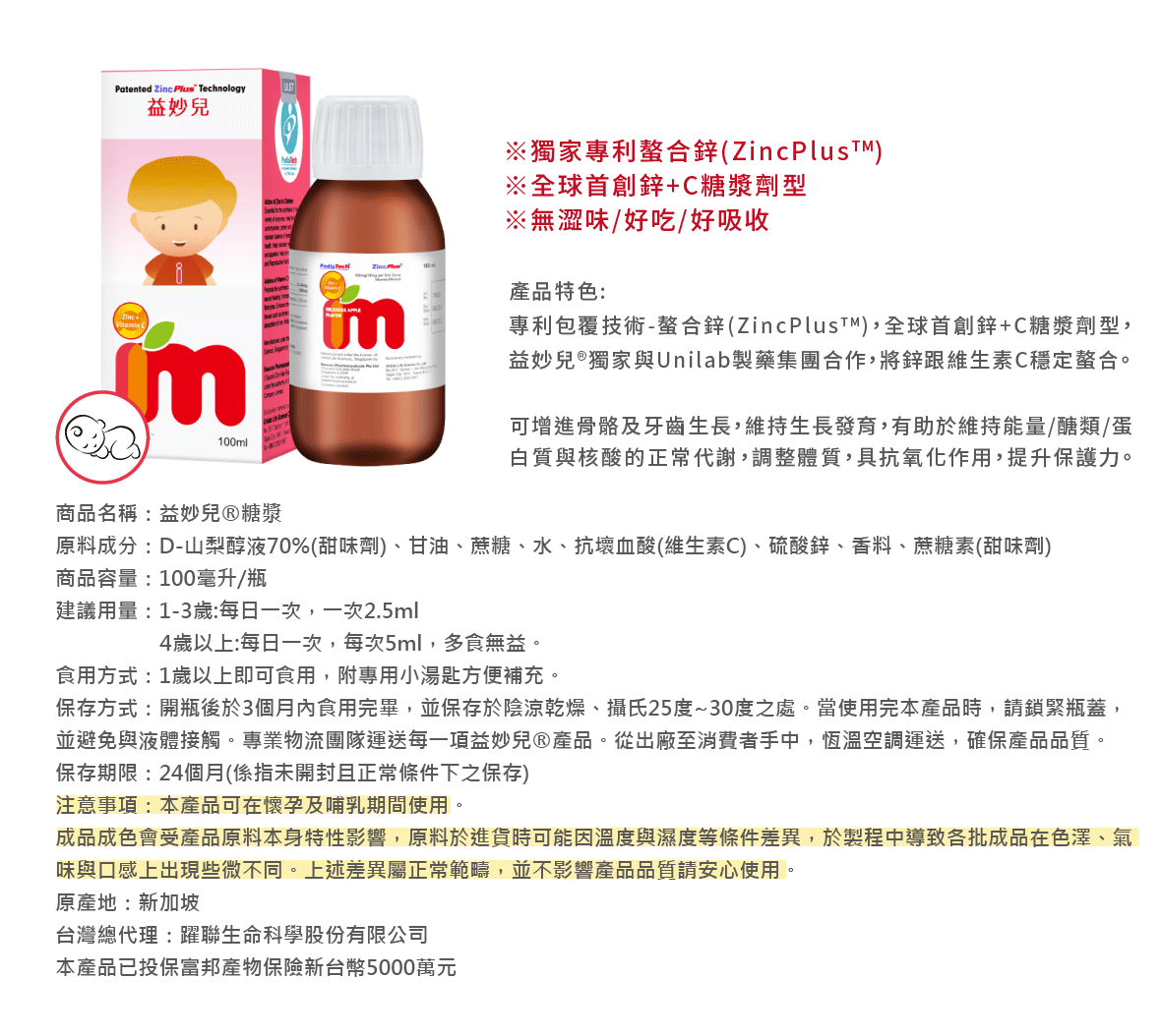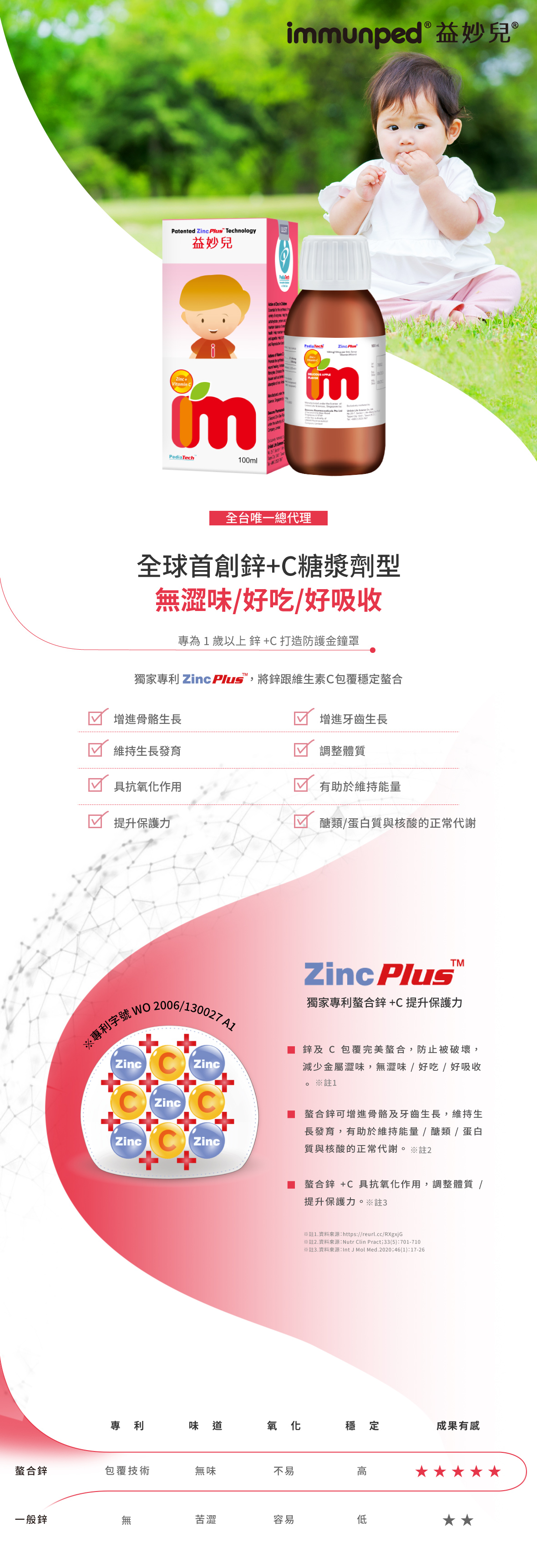✦ 全球首創鋅+C糖漿劑型