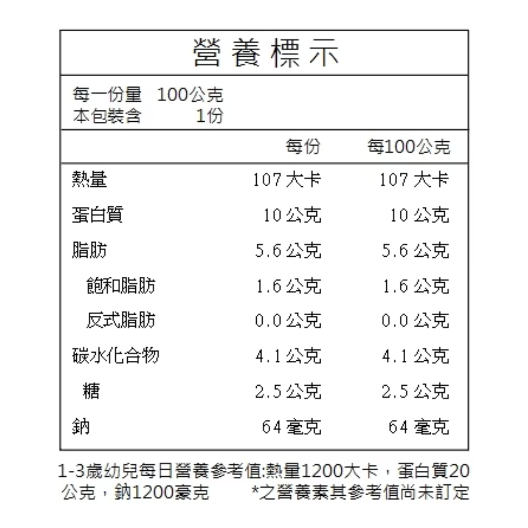 注意事項:本產品含有骨頭,幼兒食用時務必要有家長在旁陪同。