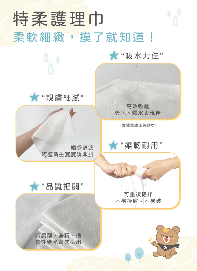 ◆ 也可當作洗完屁屁的吸水巾,日常餵奶巾、口水巾、潔膚巾很適合