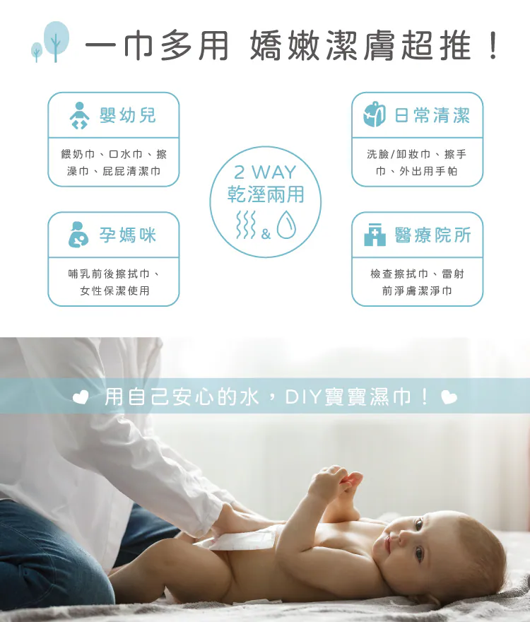 ◆ 嬰兒專用乾濕兩用巾,比濕巾、紗布巾還好用
