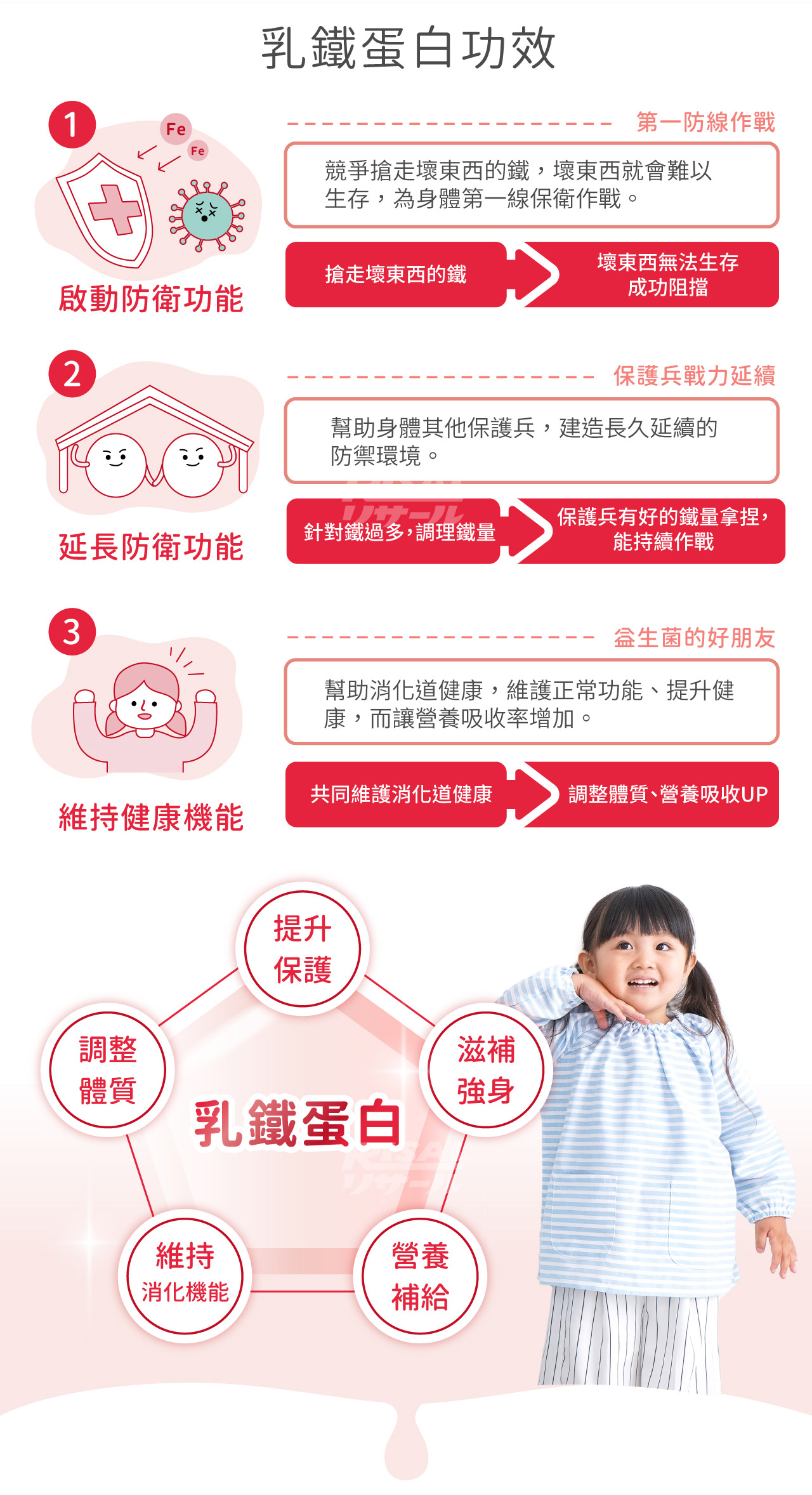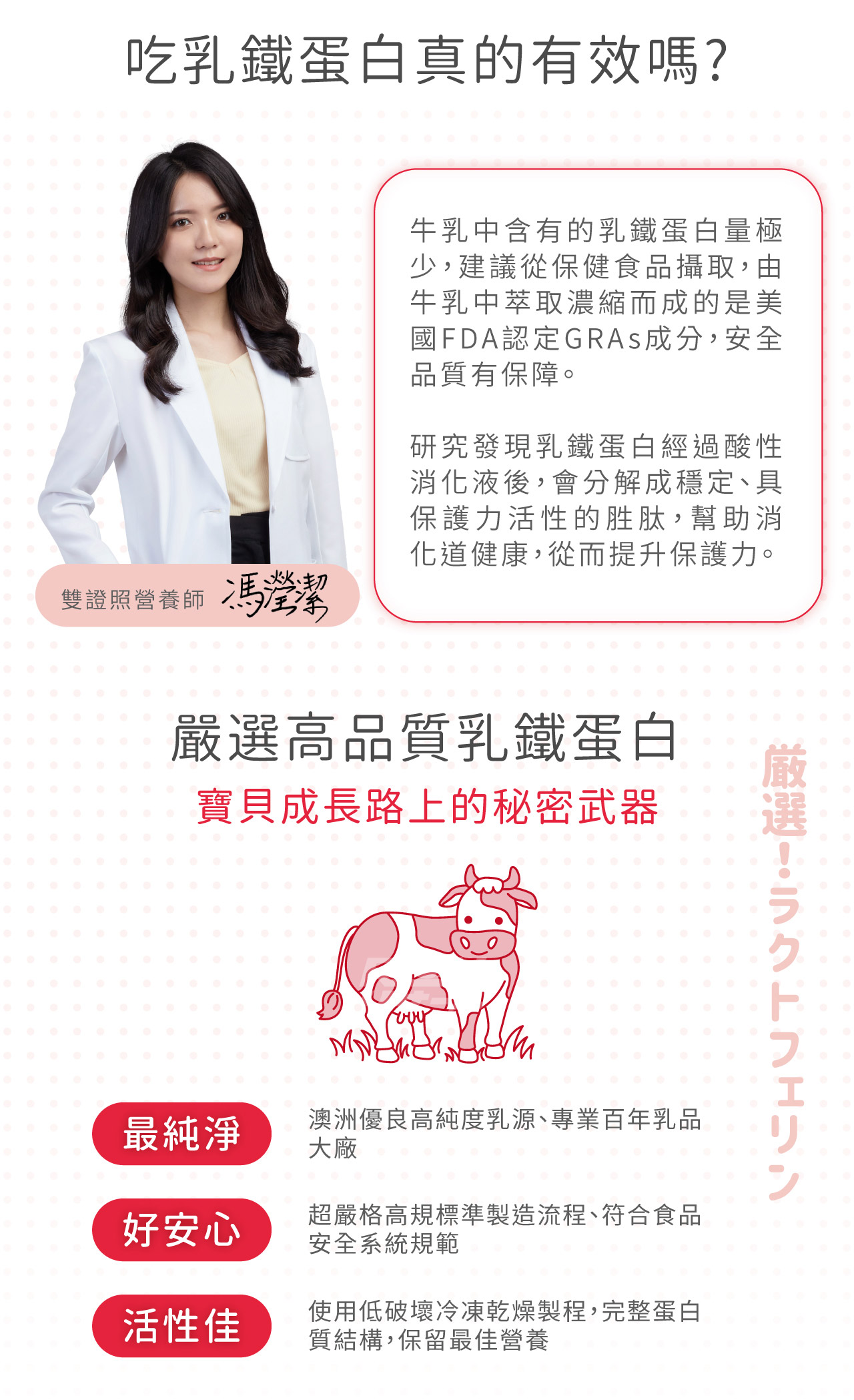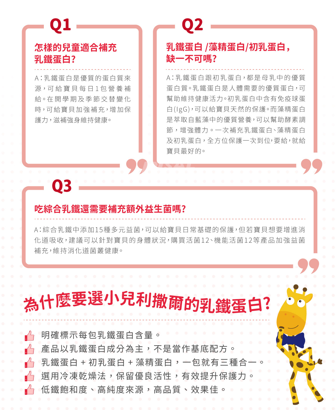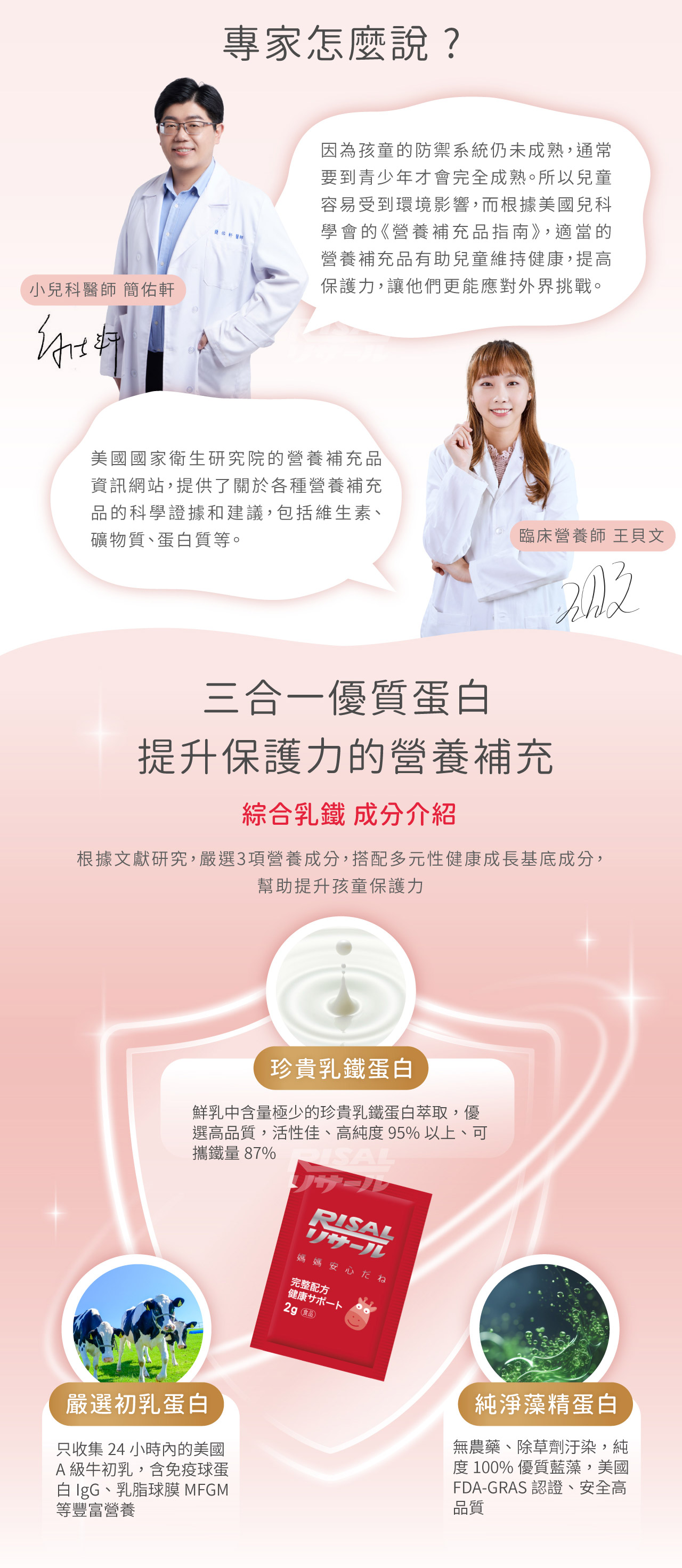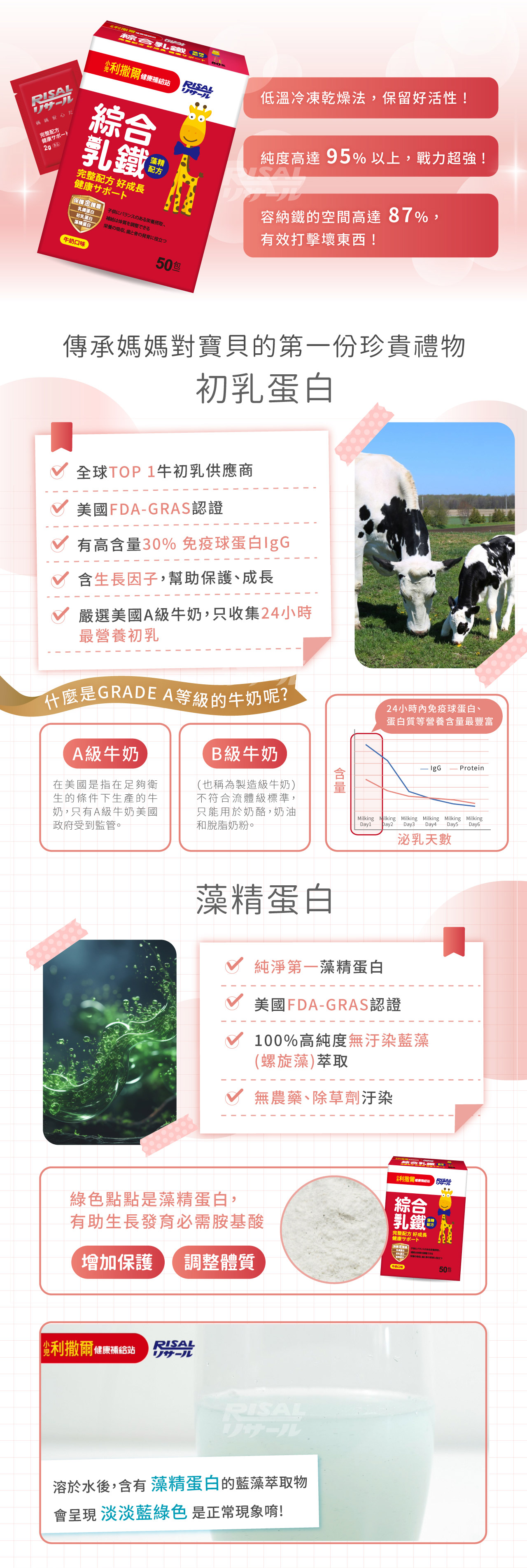 主要含有乳鐵蛋白、初乳蛋白及藻精蛋白3效保護力