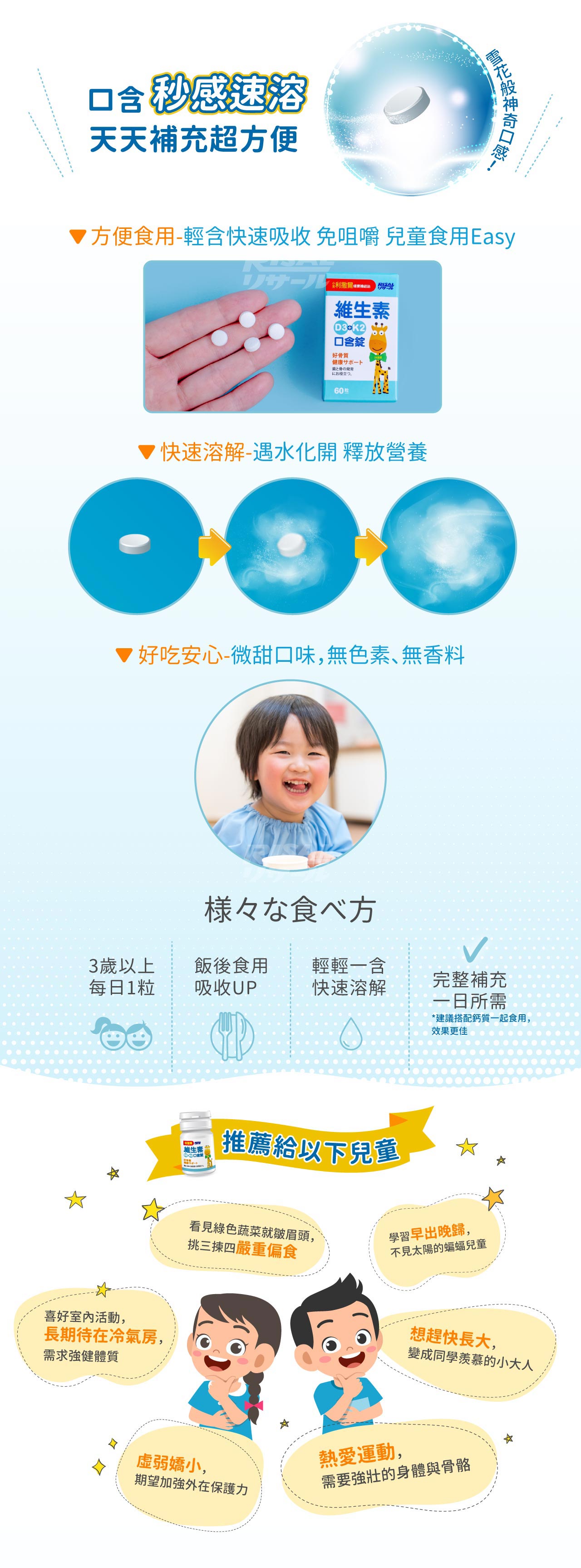 專為孩子的骨骼發育而設計,方便食用