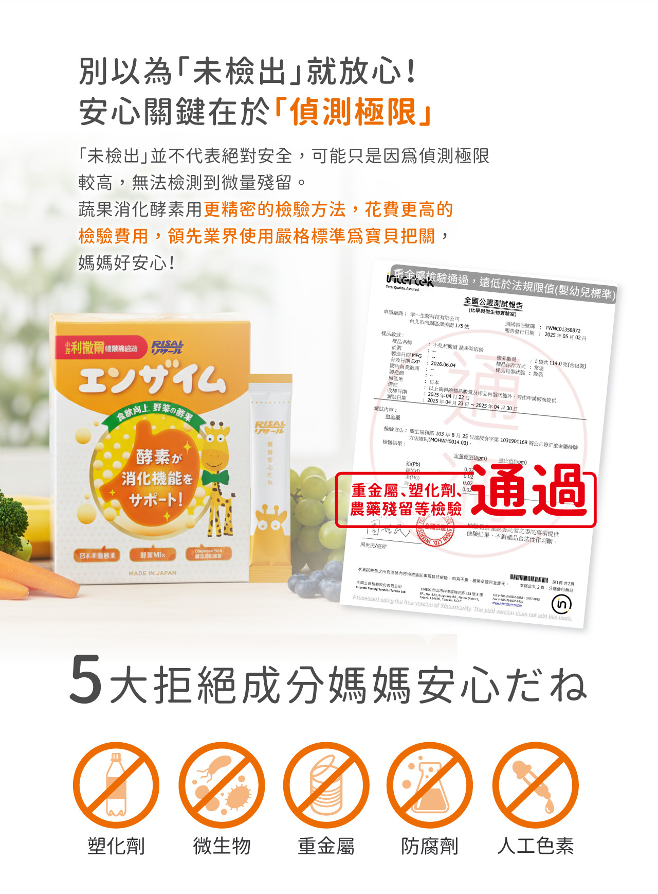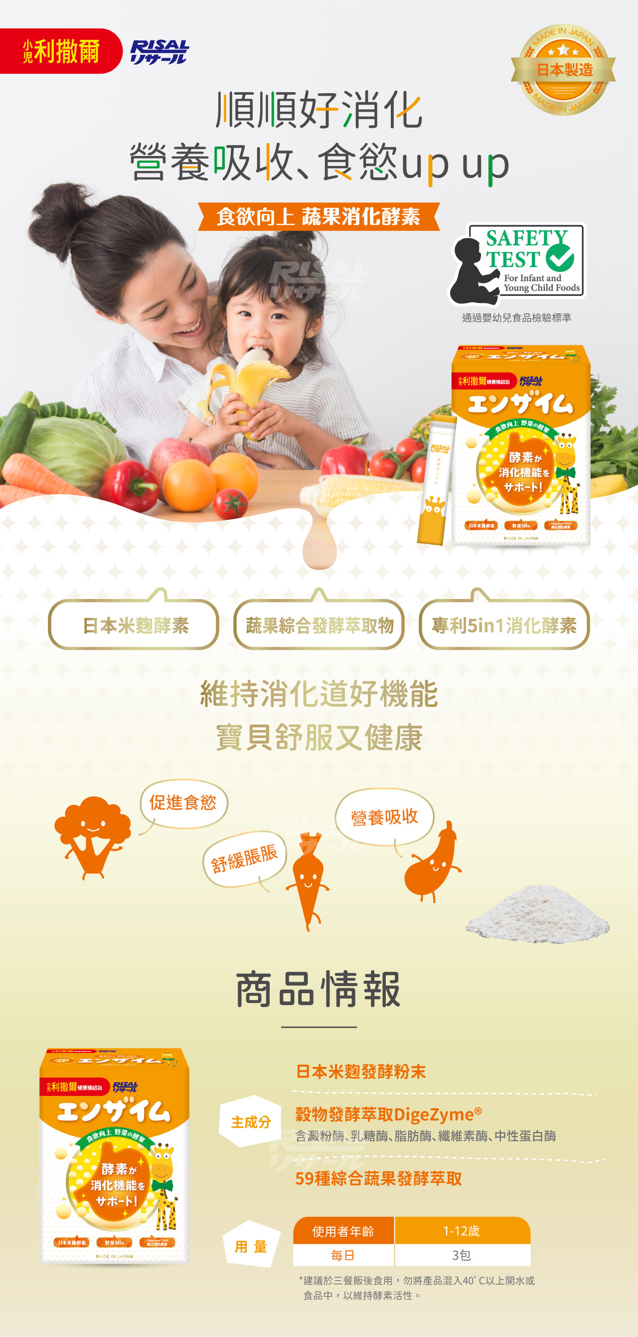成分好安心: 日本製無添加砂糖、人工甜味劑、香料、色素、防腐劑,幼兒食用更安心