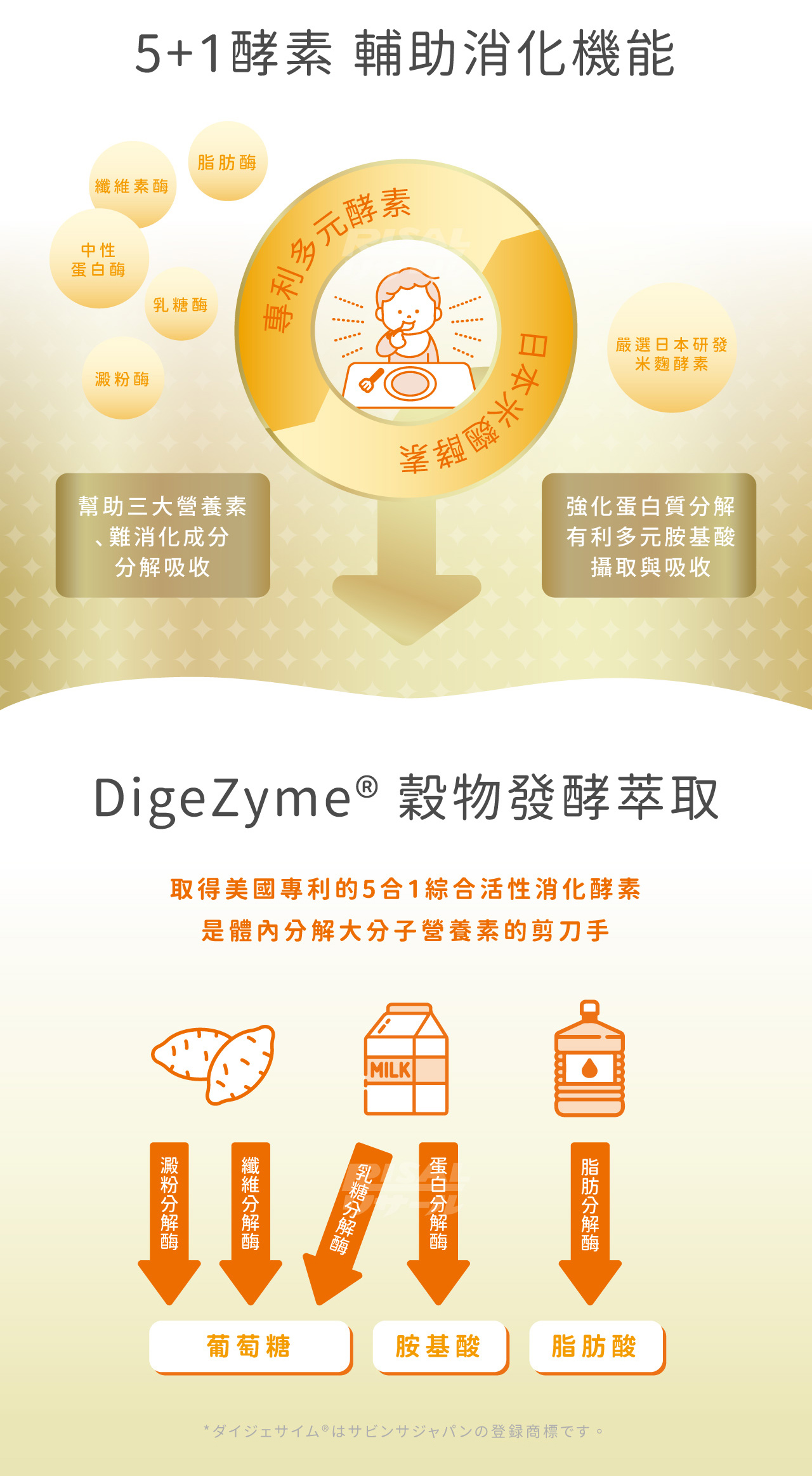 5+1 雙效分解: 專利活性酵素+日本米麴,化解脹脹感,餐後輕鬆舒緩