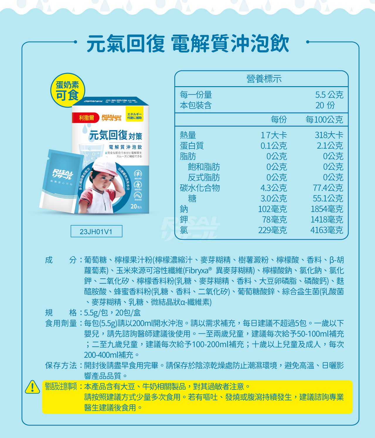 成  份:葡萄糖、檸檬果汁粉檸檬濃縮汁、麥芽糊精、樹薯澱粉、檸檬酸、香料、β胡蘿蔔素、玉米可溶性纖維(Fibryxa ®異麥芽糊精、檸檬酸鈉、氯化鈉、氯化鉀、二氧化矽、檸檬香料粉糖、麥芽糊精、香料、大豆卵磷脂、磷酸鈣、麩醯胺酸、蜂蜜香料粉乳糖、香料、二氧化矽、葡萄糖酸鋅、綜合益生菌乳酸菌、麥芽糊精、乳糖、微結晶狀α纖維素
