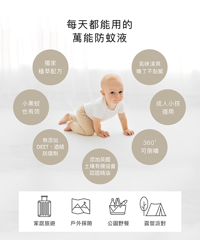 無添加DEET、酒精、防腐劑,成人、小孩適用