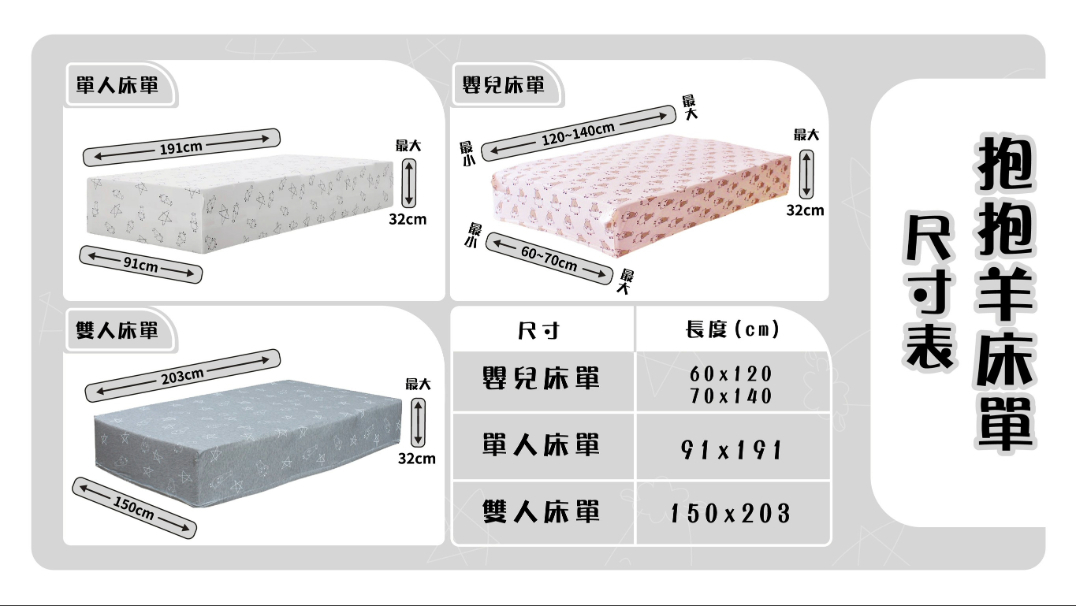 適用床墊:適合60公分x120公分、70公分x130公分和 70公分x140公分的床墊