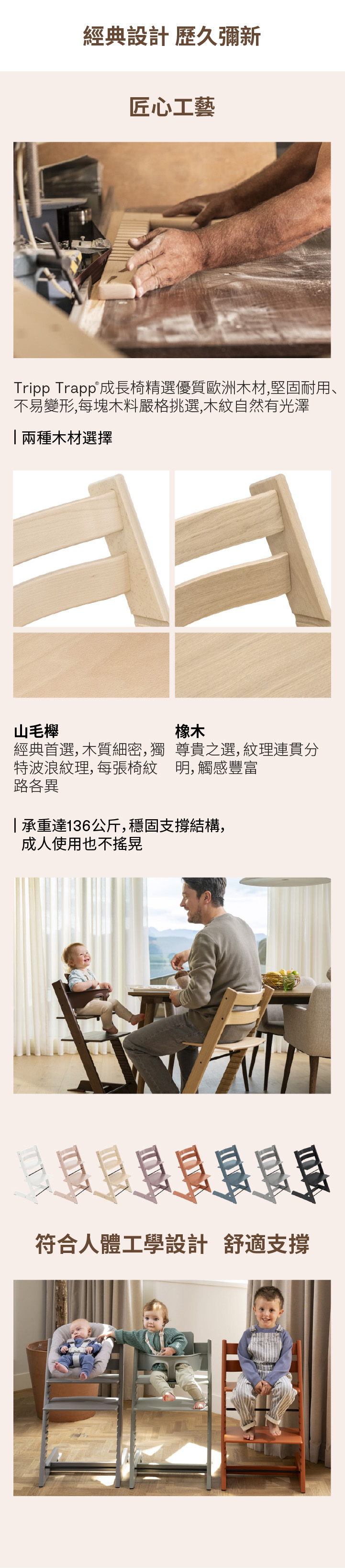 ✦ 穩固的結構和歐洲山毛櫸木材質,可承受 136公斤/300 磅重的成人
