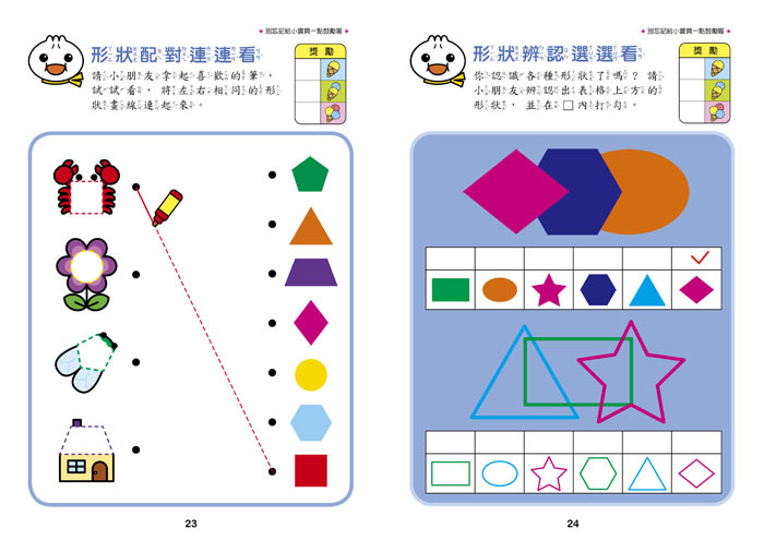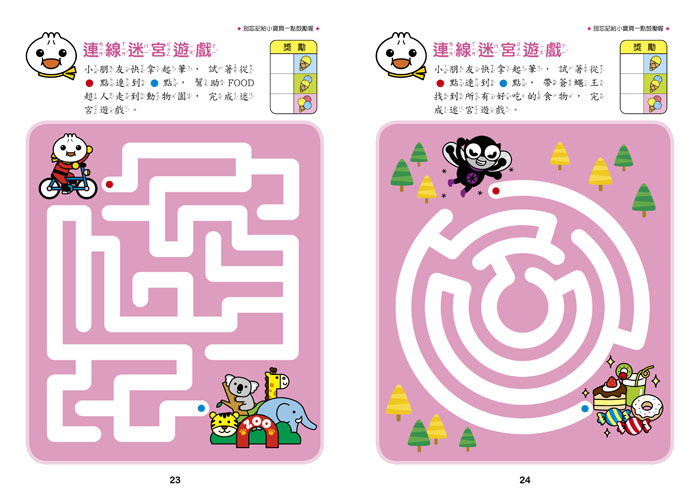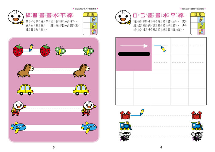 每一頁遊戲都附有親子互動式的獎勵圖案,當孩子完成練習,別忘了給孩子愛的鼓勵喔!