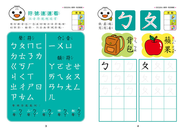 有注音符號的筆順練習與詞語認識,還有好玩的練習遊戲,讓孩子快樂的學習ㄅㄆㄇ。
